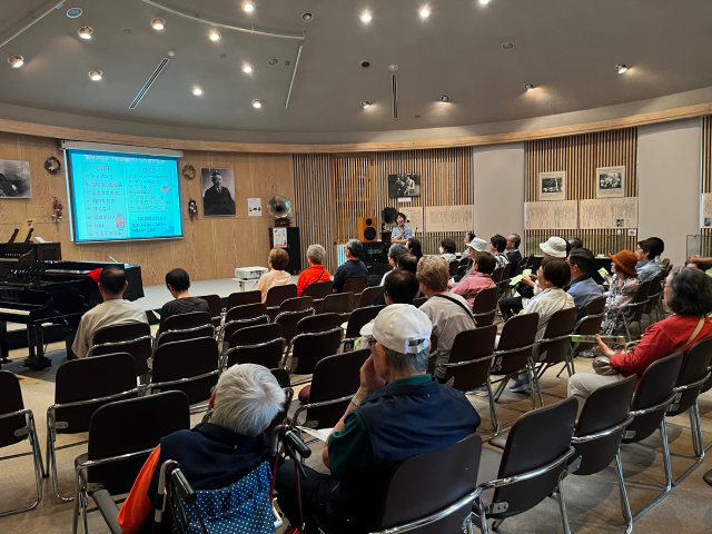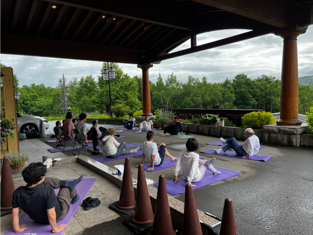 2日目は、雲海で有名な展望台、SORAテラスにロープウェイに乗り山頂へと行きました。雲海こそ観ることはできませんでしたが、霧の中での幻想的な雰囲気、花壇に咲いている綺麗な高山植物を愛で、SORAテラスカフェでご昼食をお召し上がりいただきました。3日目はハープの演奏体験をし、最終日は小布施にて、天才作曲家の生涯を紹介する、中山晋平記念館にて皆で合唱を楽しみ、桜や牡丹の華やかな絵画を展示する、中島千波館を訪れました。朝のラジオ体操とヨガで一日が始まり、心癒される音楽と楽しい夕食で一日を終える日々をお過ごし頂きました。今年で4年目を迎えた「奥志賀高原 グローバルMUSICサマーキャンプの旅」は、来年も計画いたします。ひと夏の楽しいひとときを、一緒にお過ごしになりませんか? おすすめの旅です。