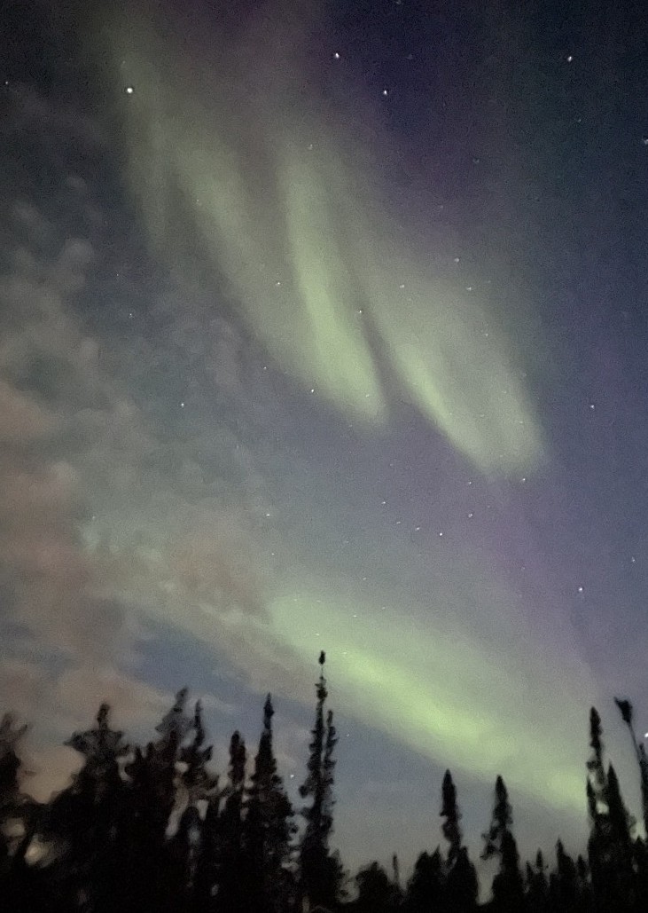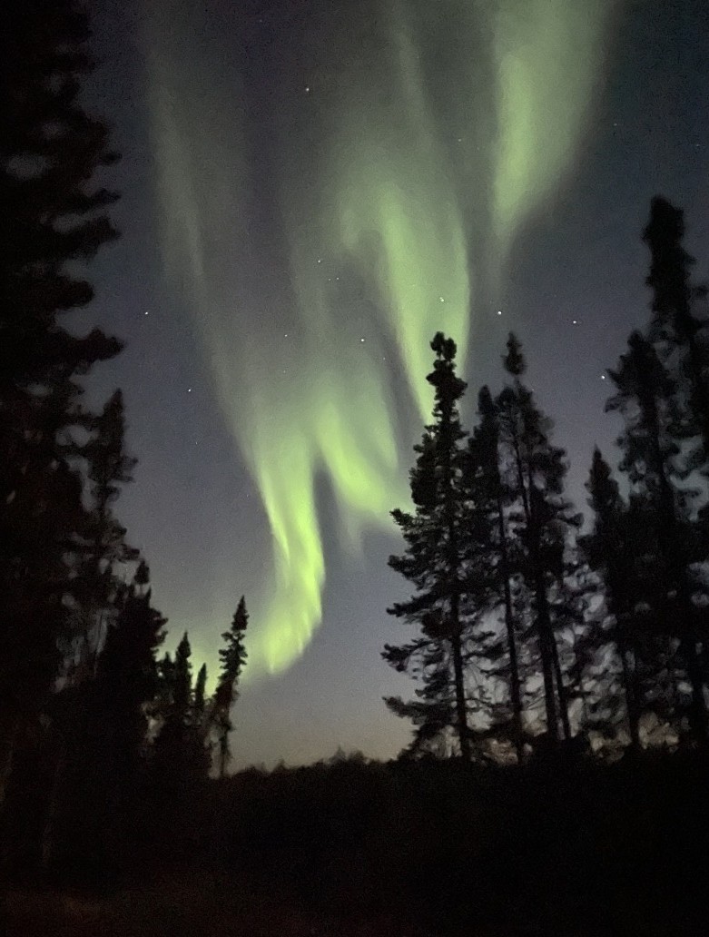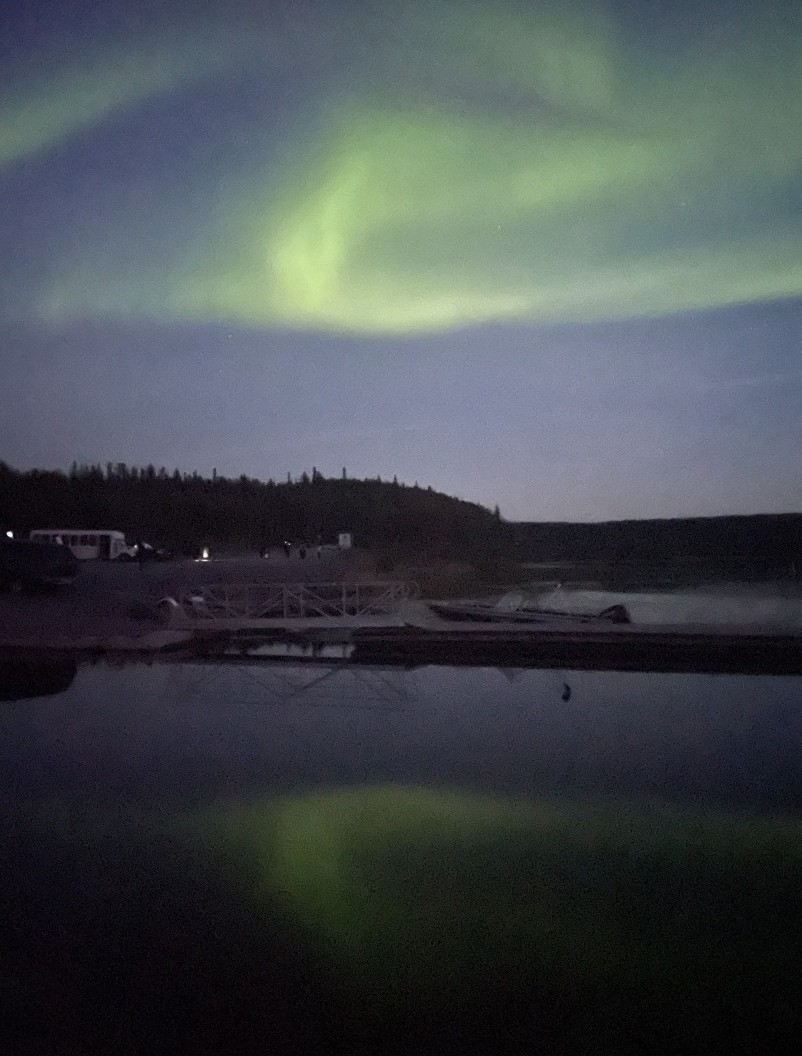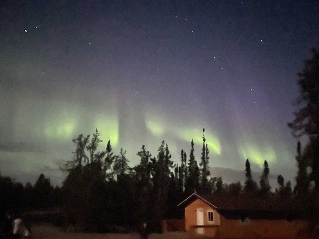 11年周期でオーロラ活動が活発になりますが、2025年は当たり年と言われています。現地滞在は4泊でしたが、毎晩オーロラを見ることができました。イエローナイフでは郊外までバスで移動し、より暗い場所にある小屋で出現を待つオーロラ鑑賞が主流ですが、グローバルではオーロラをバスで追いかける「オーロラ・ハンティング」、湖畔のキャビンまでボートで移動し、湖面に映るオーロラ鑑賞など、変化を設けてご覧いただきました。冬では味わうことが出来ない湖面に映るオーロラは見事でした。また出る場所が刻々と移動したり、直線状のものやカーテン状のオーロラなどさまざまな形に変化をするオーロラをお楽しみいただきました。連日深夜までのオーロラ鑑賞のため、朝食時間には起きれなくても、自由に昼食に変更できるところも、オーロラ鑑賞をする人には安心でした。今回はペルセウス流星群の極大時期にも重なり、流れ星もたくさん見ることができました。ダウンジャケットやフリースなどの防寒具も持参してはいましたが、それほど寒さを感じないため、夏のオーロラ鑑賞はおすすめです。