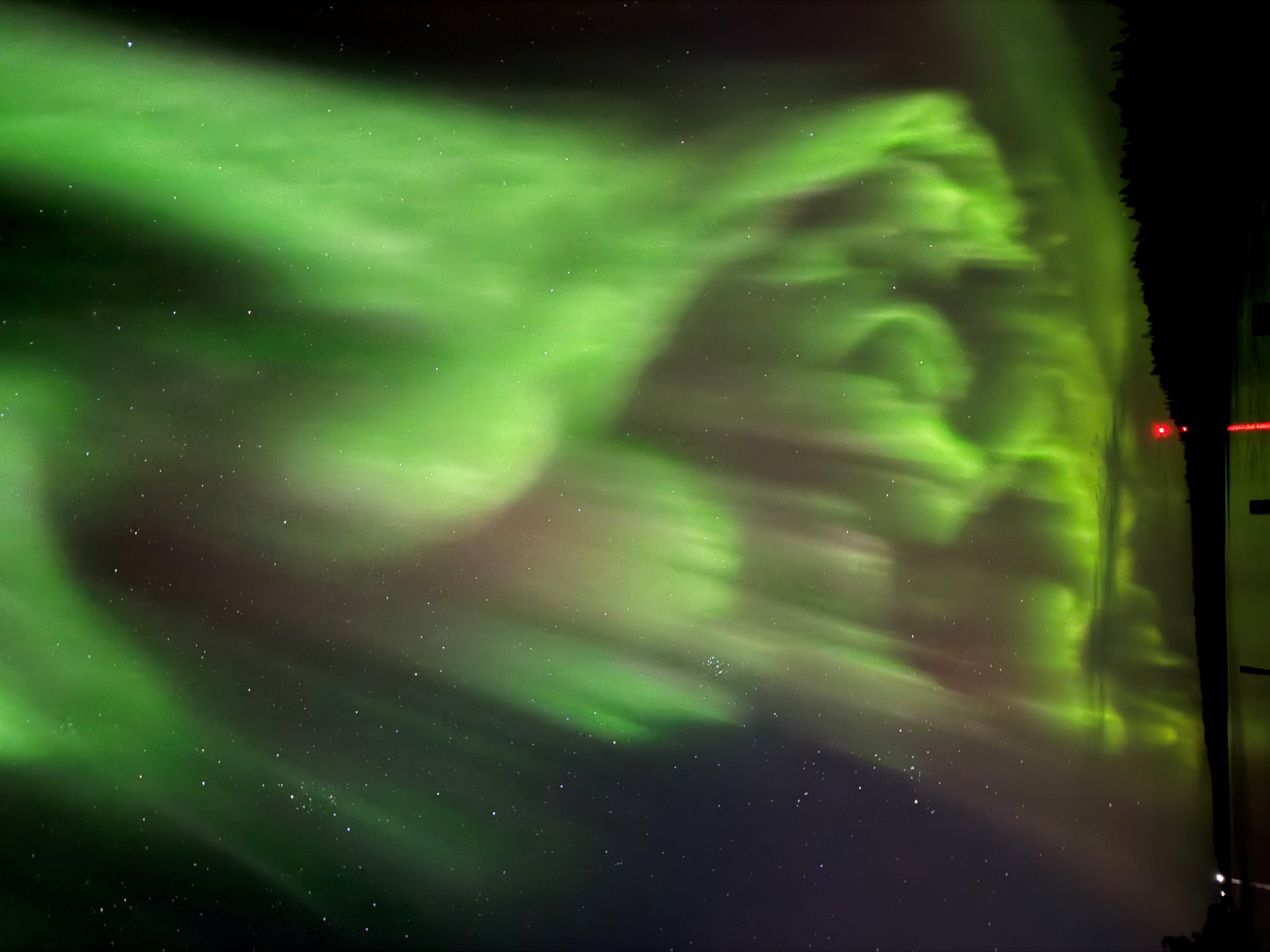 今年は、太陽活動が活発になる年で、“オーロラの当たり年”とも言われています。今回のツアーは4回の鑑賞チャンスのうち、強弱に差はありましたが、全てでオーロラをご覧いただくことができました!また、今回掲載しているオーロラの写真は全てiPhone16proと三脚を使用して撮影しました。カメラの操作が難しい方も、スマートフォンであれば気軽にオーロラを撮影することができます。