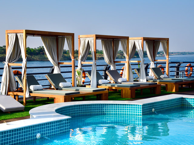 全室バスタブ付のデラックス船「メイフラワー号」に乗船し、ルクソールからアスワンまでのナイル川クルーズをお楽しみいただきます。4連泊の船旅で、ゆったりと流れる美しいナイル川沿いの景色や、朝日や夕日を眺めながらお過ごしください。陸路ではアクセスしづらいナイル川沿いに点在する遺跡を効率よく観光できるのも、クルーズの魅力です。