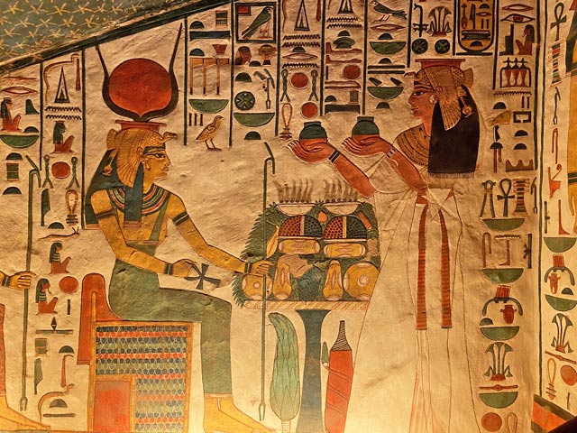 ラムセス2世の寵愛を一身に受けた王妃ネフェルタリの墓の壁画は古代エジプトの最高傑作と称されます。約3200 年前の壁画は、昨日描いたかのように錯覚をしてしまうほど、とても色彩豊かで鮮明な状態で残っています。