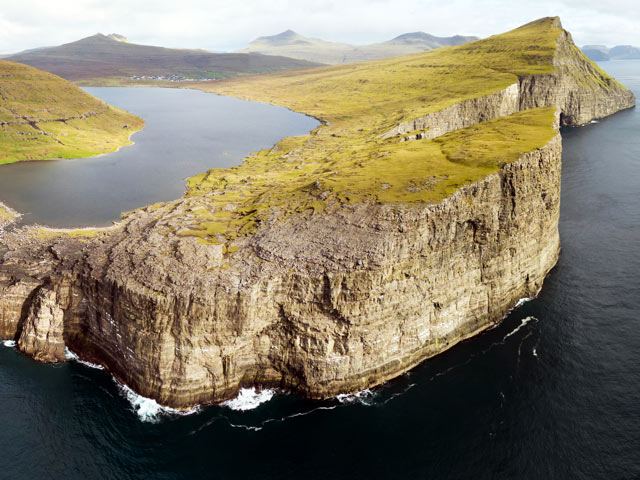 海面よりも高い場所に位置するため、まるで大海原の上に浮かんでいるように見える不思議な湖「ソルヴァグス湖」。湖上を進むクルーズと、大自然が創り出した圧巻のパノラマが広がる断崖「トレーラニパ」をご案内します。フェロー諸島ならではの幻想的な絶景を存分にお楽しみください。